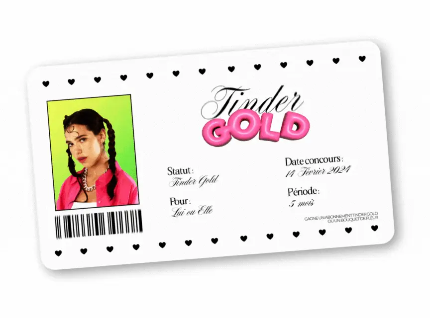 Gagnez un pass Tinder Gold pour trouver votre match parfait. Conception de design pour ce concours incontournable !